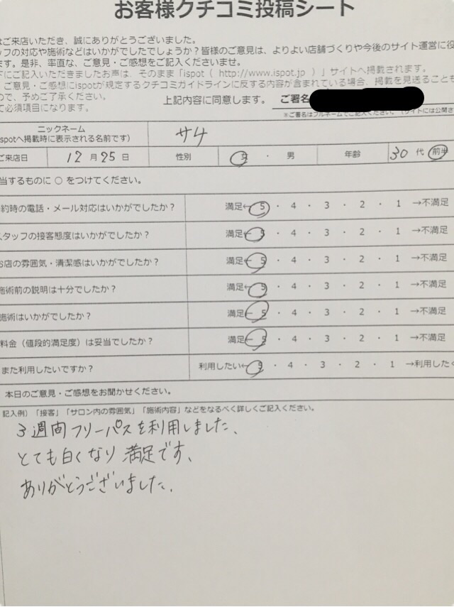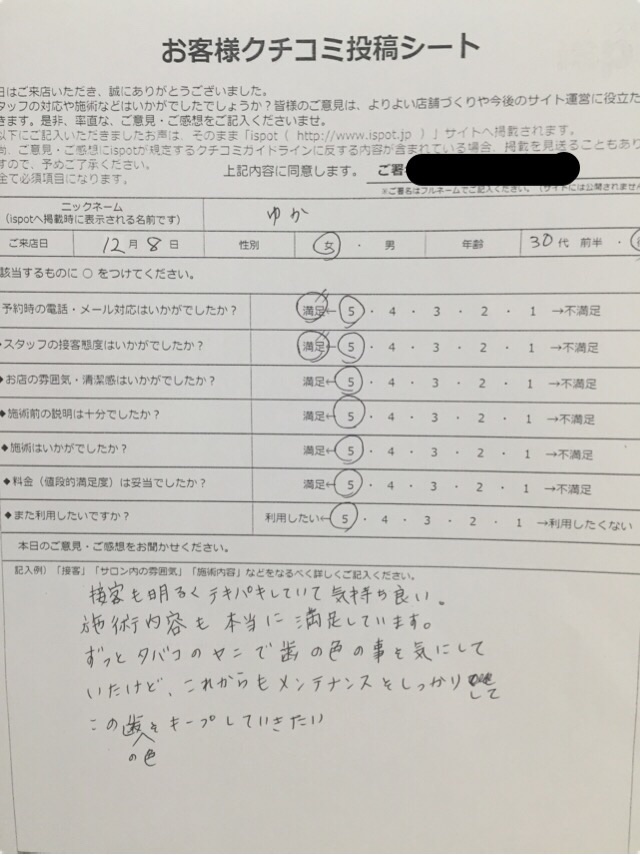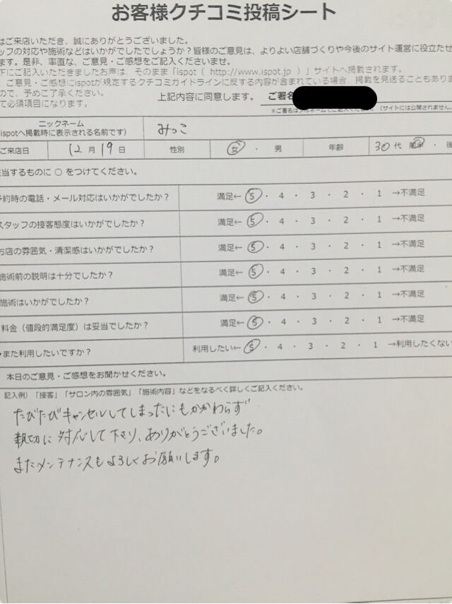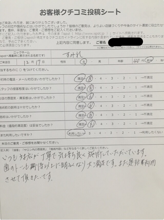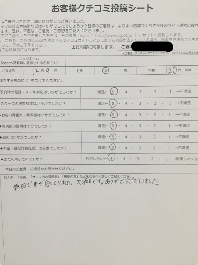 本日は、12月に来店されたお客様のアンケートをご紹介します!☆